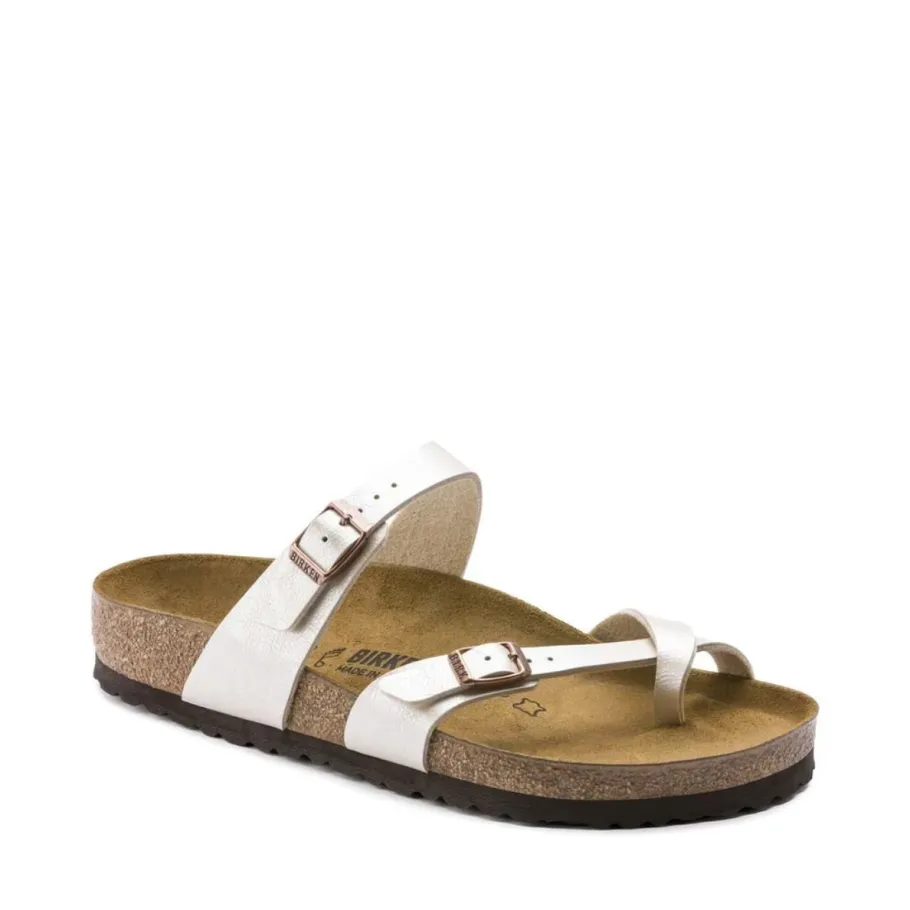 Combining elegance and comfort, BIRKENSTOCK’s Mayari sandal features crossover straps and a luminous finish, perfect for the invitation season. Designed with our signature material and an original contoured insole, they ensure optimal, long-lasting support.
