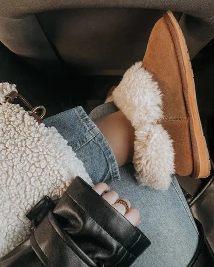 - Breathable sheepskin keeps your feet perfectly warm in winter and cool in summer