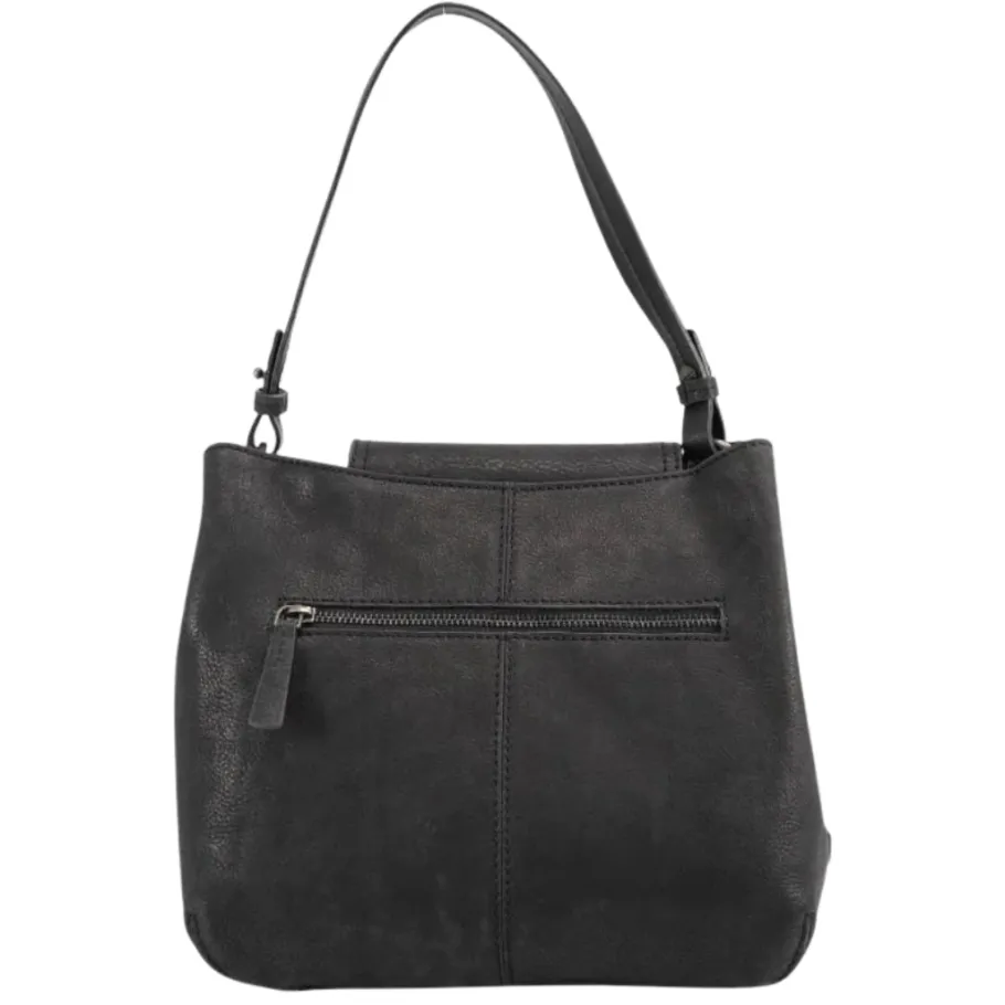 - Decorative flap with magnetic closure covering main compartment