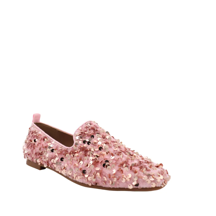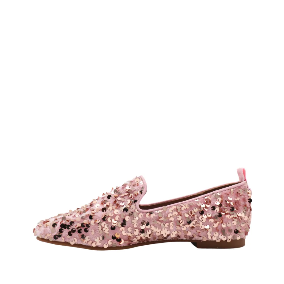 Add a touch of sparkle and sophistication to your outfits with the SISSY loafers from APROPO. These refined shoes feature glittering pink and gold sequins, perfect for illuminating your style and asserting your elegance.