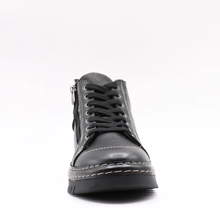 practical. Designed in genuine leather and made in Europe, it offers a casual look with contrasting stitching and a flexible sole with deep grooves for better grip. Featuring a side zipper, they’re easy to slip on for everyday wear. Available in timeless black or natural leather, it’s a versatile shoe that combines style and functionality.