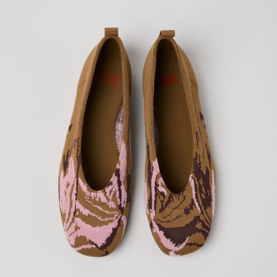 Comfortable, original and environmentally friendly, these women’s ballerinas in multicolored recycled PET embody the bold spirit of Camper. Derived from the TWINS concept launched in 1988, they combine two different yet complementary models to create a unique pair that overturns the traditional idea of identical shoes. With their simplified knit, OrthoLite® Recycled™ insole and partially recycled TPU outsole, they offer the perfect balance of style, comfort and durability.