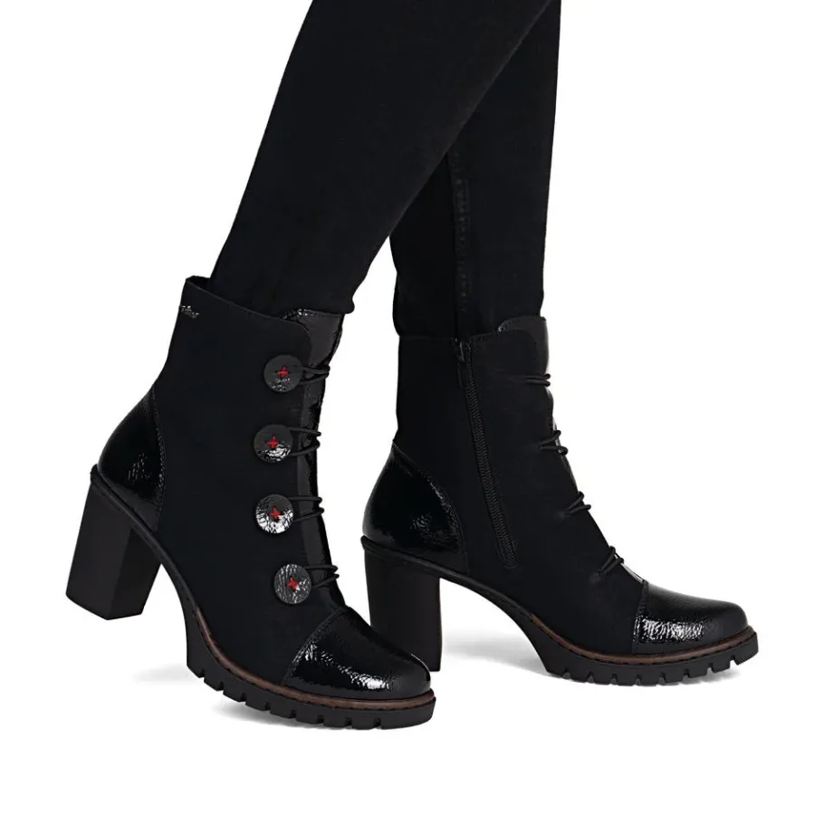 On the fashion radar! These black Rieker booties promise a divine feel. Their stitched construction makes them particularly sturdy and flexible. A zipper makes putting them on quick and easy. The lightweight, cushioned sole with block heel ensures a pleasant walk, even when worn for long periods. Attention, potential favorites!
